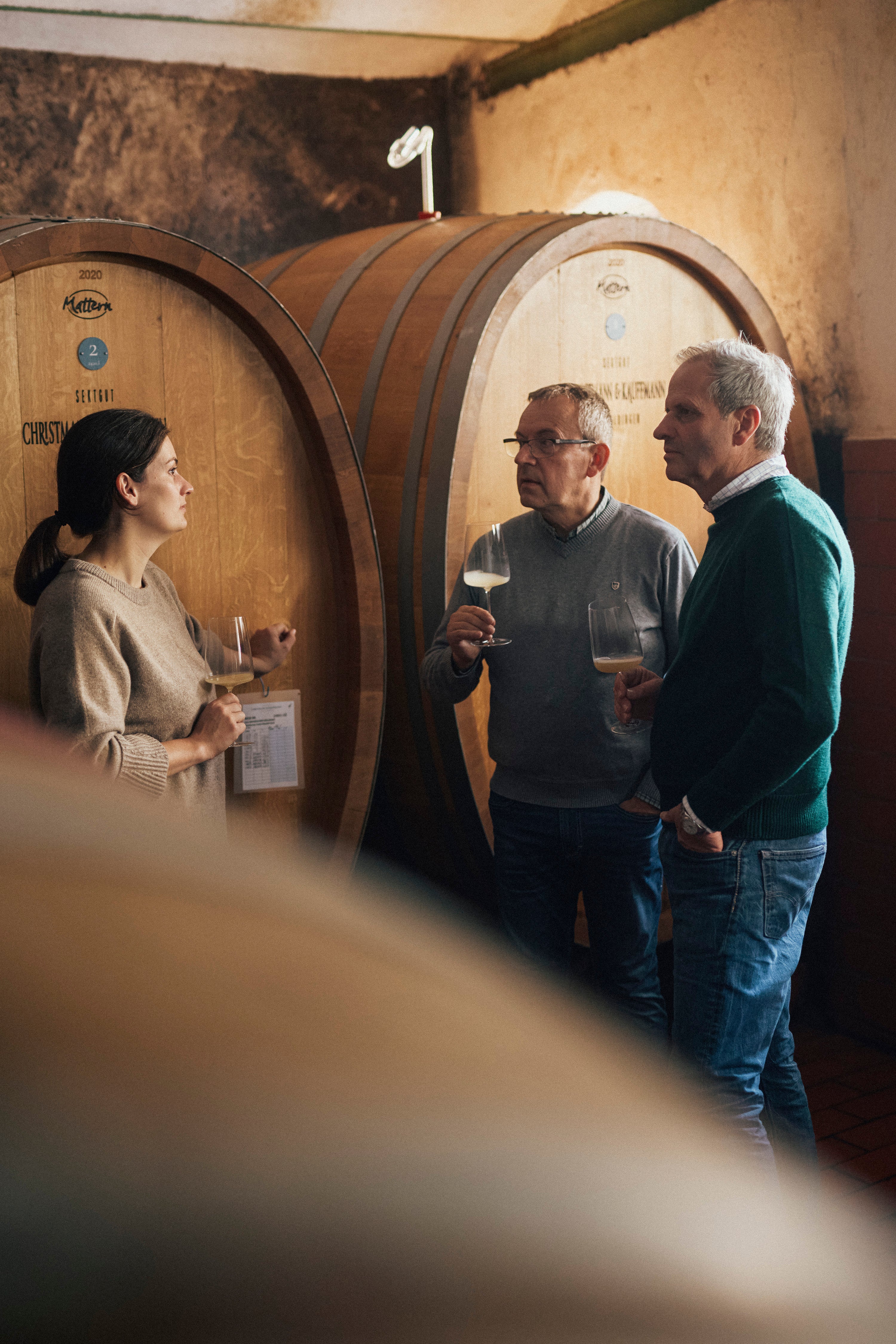 “In Blindverkostungen erinnern mich Rieslingsekte mit ihrer «laserstrahlartigen» Präzision stets an die besten Grand Cru Blanc de Blancs von «Mesnil sur Oger». Mit der Cuvée No. 104 haben wir die perfekte Balance zwischen Frische, Salzigkeit, Extrakt und Schmelz erreicht. Sie beweist (wieder einmal) eindrucksvoll, dass Rieslingsekt definitiv zur besten Schaumwein-Kategorie gehört.”